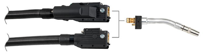 Сварочная горелка МIG/МАG серии WH/WH-PP с воздушным охлаждением c возможностью замены гусака позволяет менять полностью укомплектованный гусак горелки в ручную или автоматически - благодаря инновационной технологии интерфейса на сменной части. Это означает, что горелки с одинаковым дизайном могут быть заменены в течение нескольких секунд для технического обслуживания или для использования горелки с особой геометрией для различных сварочных позиций в соответствии с вашими требованиями.