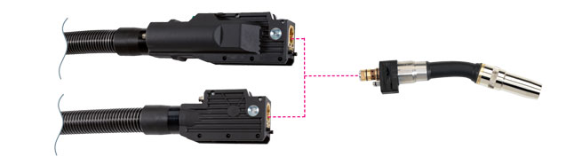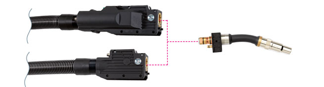 Сварочная горелка MIG/MAG серии WH/WH-PP с жидкостным охлаждением c возможностью замены гусака позволяет менять полностью укомплектованный гусак горелки вручную или автоматически - благодаря инновационному технологии интерфейса на сменной части. Это означает, что горелки с одинаковым дизайном могут быть заменены в течение нескольких секунд для технического обслуживания или, чтобы использовать горелку с особой геометрией для различных сварочных позиций в соответствии с вашими требованиями.