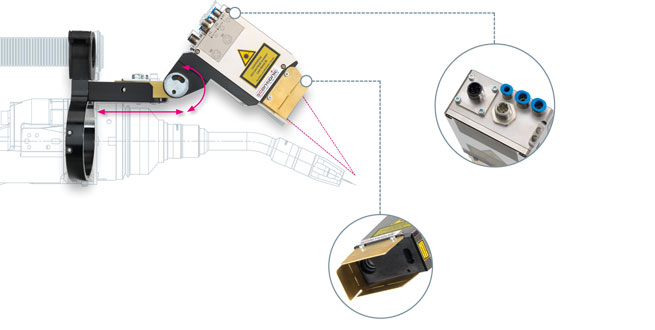 - Точное определение шва и точная центровка головки датчика относительно шва благодаря использованию трилинейного лазера